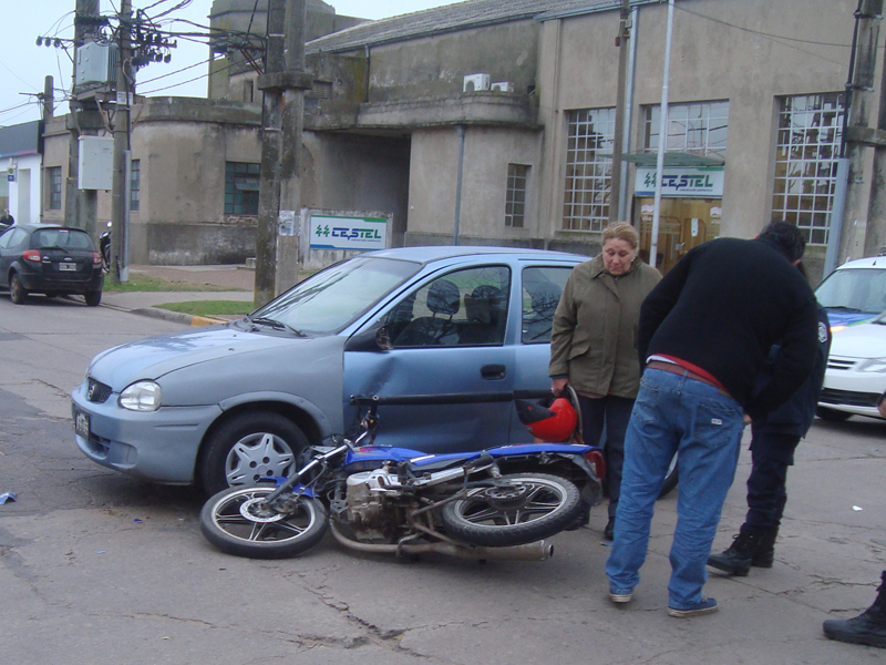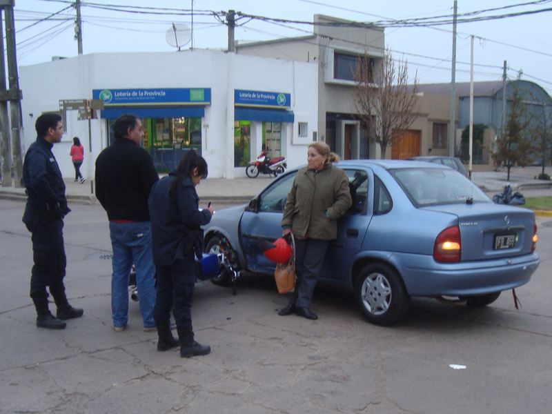 El impacto se produjo cuando una moto Zanella, azul 125cc, que circulaba por Avda. Avellaneda, al llegar a la esquina de Mendoza, impacto sobre la puerta delantera de un Chevrolet Corsa, que circulaba por la segunda arteria.