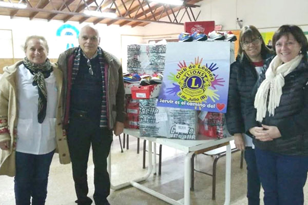En el transcurso de la presente semana, integrantes del Club de Leones de 9 de Julio procedieron a efectuar la entrega de 50 pares de zapatillas a la Escuela Nº30 de Ciudad Nueva, en lo que constituye un significativo aporte para la comunidad educativa del establecimiento.