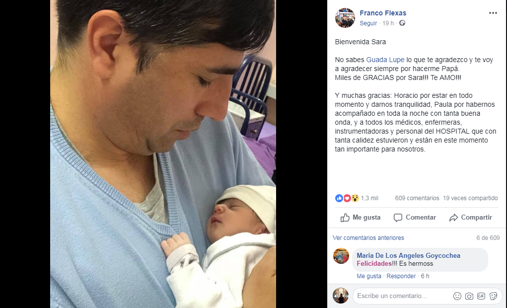Franco, en su perfil de Facebook, dejó un agradecimiento a todo el personal del hospital que lo atendieron con tanta calidez en este momento tan importante.