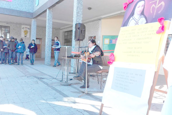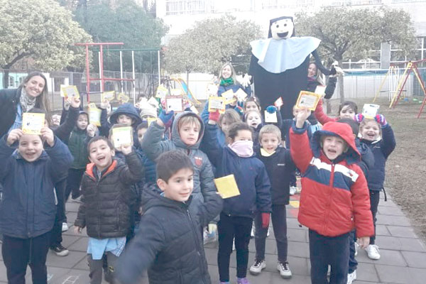 Nivel Inicial: recorrida por el barrio del colegio repartiendo invitaciones a los vecinos y procesión por todo el colegio cantando con pancartas alusivas a la Madre Adela.