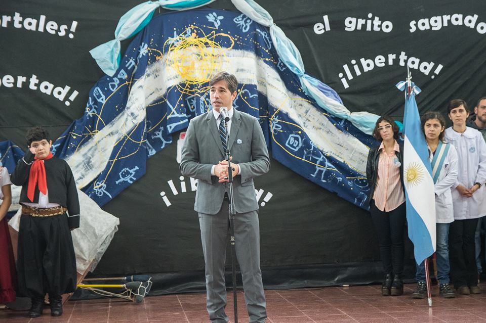 El Intendente saludando a los niños presentes.