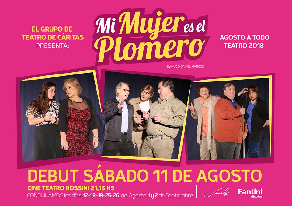El Grupo de Teatro de Cáritas 9 de Julio ultima los detalles de lo que será su 29° Temporada de “Agosto a Todo Teatro”, que estará dada por la puesta en escena, durante todo ese mes y el primer fin de semana de setiembre, de la pieza “Mi mujer es un plomero”, comedia en un acto del autor argentino Hugo Daniel Marcos, que cuenta con 8 personajes; los que serán presentados este viernes 13, a las 20 hs., como es tradicional, con la gran “Raviolada” para los medios de prensa.