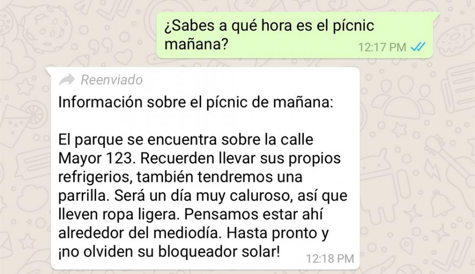 Y si a ti te reenvían algo, verás el mismo aviso.