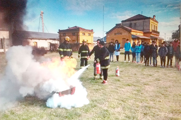 El efectivo del Cuartel local Oficial Santiago Barreau tuvo a su cargo el dictado de la faz teórica, en tanto que posteriormente se realizaron prácticas en los terrenos del ferrocarril, ubicados frente al establecimiento, sobre la calle General Paz, donde un importante número de alumnos pudo apreciar los procedimientos que deben completarse en casos de emergencia donde se requiera la utilización de matafuegos, y sus diferentes características.