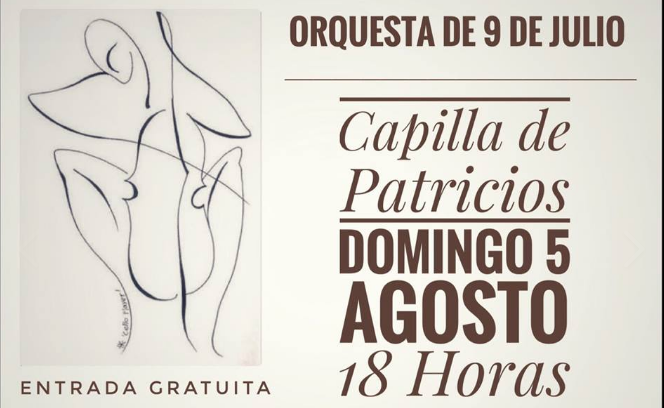 A través de la Dirección de Cultura, Educación y Deportes de la Municipalidad de Nueve de Julio, el domingo 5, a las 18 hs., se habrá de presentar en la Capilla de la localidad de Patricios, la Orquesta de 9 de Julio, con entrada libre y gratuita.