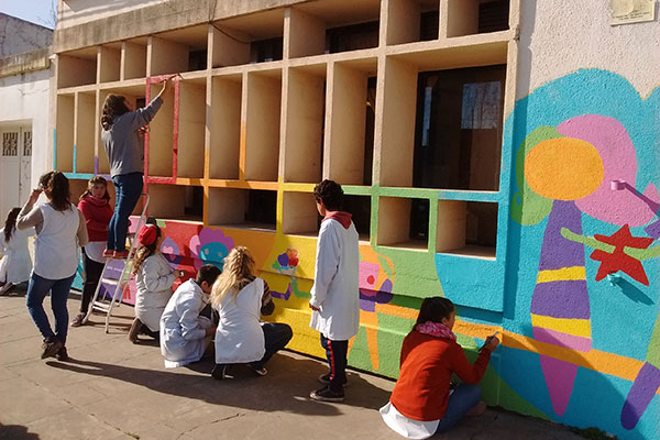 El mismo, según detallaron el director del establecimiento, José María Arcucci y la docente Daniela Díaz; estuvo a cargo de la profesora de Plástica Agustina Migliardi y contó con la participación de alumnos y comunidad educativa, junto con alumnos de la Escuela Nro. 5 “Domingo Faustino Sarmiento”; lo que ha permitido darle otra característica y un mayor colorido a la escuela, representando el nuevo paradigma de la educación inclusiva, con la frase alusiva “Construir es incluir”.