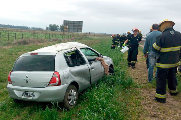 En horas del mediodía del pasado sábado, por causas que se tratan de establecer, un automóvil Renault Clío, se despistó y volcó violentamente en el kilómetro 248 de la Ruta Nacional Nº5.
