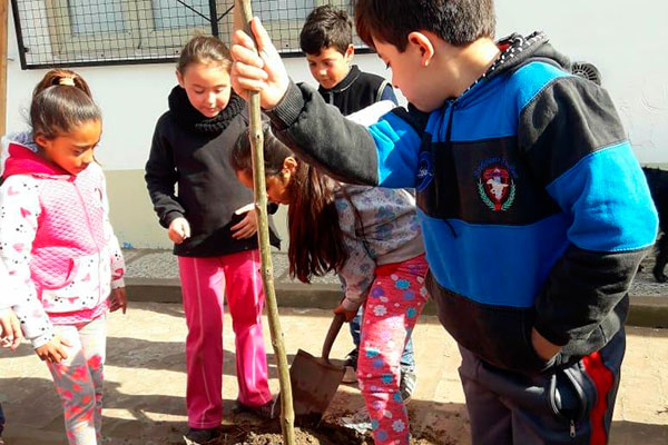 En los últimos días se efectuó esta tarea en la Escuela Nº7  de la localidad de Patricios, donde se plantaron 11 fresnos, en una tarea conjunta de los alumnos, el personal de la Delegación y los integrantes del Club de Leones.