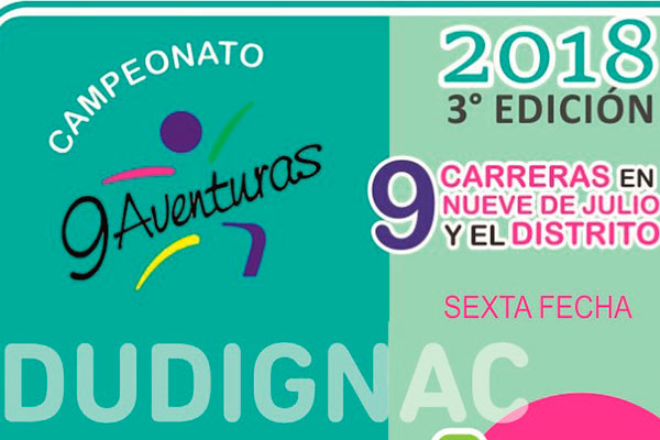 La Municipalidad de Nueve de Julio, a través de la Dirección General de Deportes, dará continuidad al campeonato “9 Aventuras”, el domingo 7 de octubre, desde las 11 hs., en la localidad de Dudignac, con largada desde el Club Atlético Social de esta comunidad, donde podrá completarse la inscripción, desde las 9 hs.