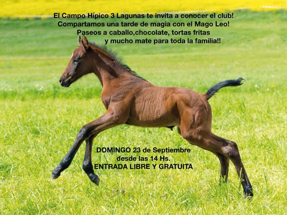 El Campo Hípico Tres Lagunas organiza una jornada familiar de paseos a caballos, show de magia a cargo del Mago Leo y mucho más, el próximo domingo 23 de septiembre desde las 14:00 hs con entrada libre y gratuita.