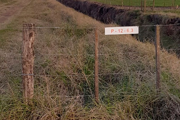 Para la identificación de la misma, se colocará en la tranquera, una chapa blanca con letras rojas refractarias con la nomenclatura.