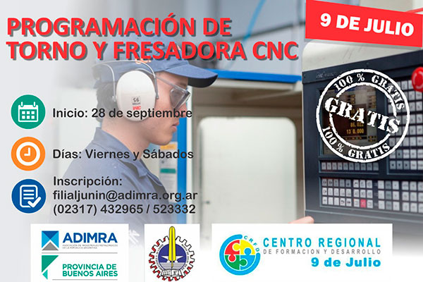 La Escuela de Educación Secundaria Técnica Nº2 “Mercedes Váquez de Labbé”, mediante un convenio con la Asociación de Industriales Metalúrgicos de la República Argentina (ADIMRA), lanzará en la jornada de hoy un interesante curso en programación de torno y fresadora CNC, que se dictará los días viernes y sábado, en forma totalmente gratuita.