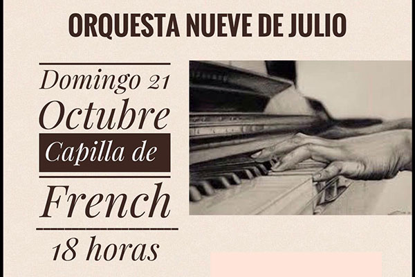 A través de la Dirección de Cultura, Educación y Deportes de la Municipalidad de Nueve de Julio, el domingo 21 del corriente, a las 18 hs., se habrá de presentar en la Parroquia de la localidad de French, la Orquesta de 9 de Julio, con entrada libre y gratuita.