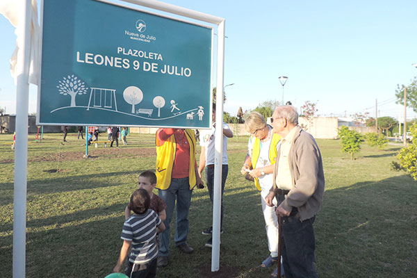 En el marco de un sencillo acto, en horas de la tarde del pasado sábado fue inaugurada la Plazoleta “Leones 9 de Julio”, la que se encuentra ubicada en la intersección de calles Alsina y Chacabuco de nuestro medio y rinde homenaje a la labor de los integrantes del Club de Leones de 9 de Julio, que impulsaron la recuperación de este espacio en favor de la barriada, junto a la Municipalidad de 9 de Julio.