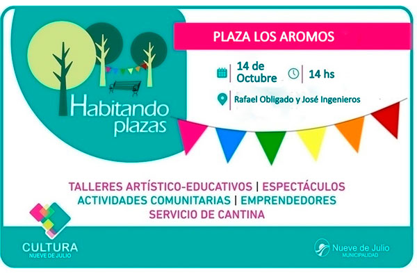 La Secretaría de Cultura, Educación y Deportes de la Municipalidad de Nueve de Julio llevará adelante este próximo domingo 14, desde las 14 hs., un nuevo encuentro del ciclo 2018 del programa “Habitando Plazas”, en la Plaza de barrio Los Aromos, ubicada en José Ingenieros y Rafael Obligado.
