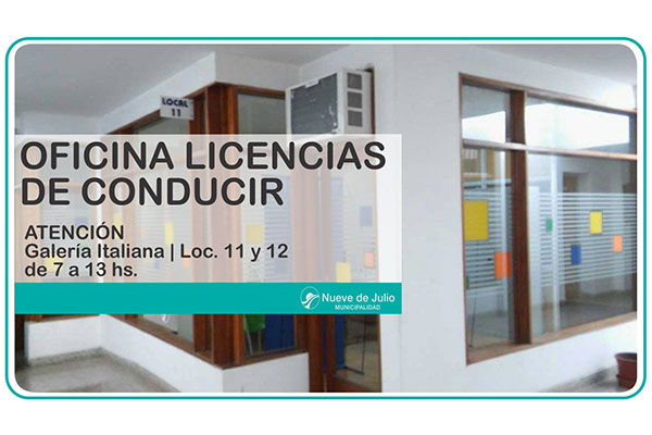 La Oficina de Licencias de Conducir de la Municipalidad de Nueve de Julio informa los datos a tener en cuenta para realizar los distintos tipos de trámites relacionados con la licencia de conducir: