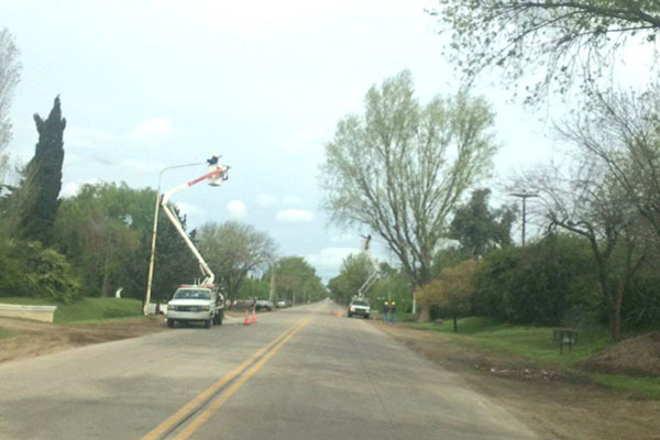 La misma, que aporta mayor calidad lumínica y permiten un significativo ahorro de energía, fue aplicada en Acceso Presidente Perón y Av. Presidente Perón, desde Ruta Nacional Nro. 5 hasta Avda. Mitre; desde la Rotonda de Ruta Provincial Nro. 65, donde además se cambiaron las viejas columnas de hormigón por otras más modernas de hierro, continuándose por el resto de la mencionada avenida; y en acceso Alte. Brown, desde Ruta 5 hasta Rastreador Fournier, y por esta arteria, a lo largo de toda su extensión.
