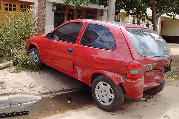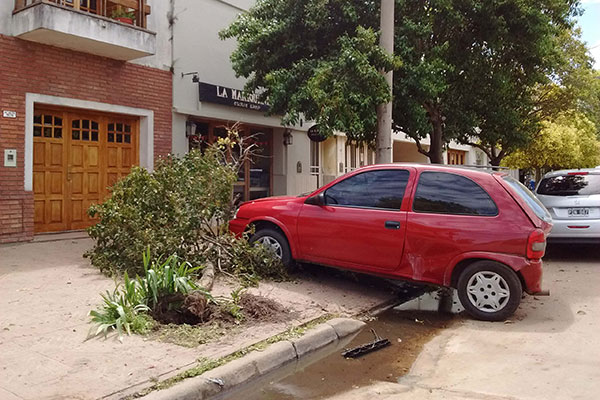 En horas de la madrugada de ayer, por causas que se tratan de establecer, en las inmediaciones de Avda. Mitre y Santiago del Estero, un automóvil Chevrolet Corsa que se encontraba estacionado junto a la acera, fue embestido en su parte posterior por un automóvil afectado a un servicio de remis; y como consecuencia del violento impacto subió a la vereda y derribó un árbol de la misma.
