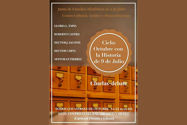 Esta conferencia se enmarca dentro del ciclo “Octubre con la Historia de 9 de Julio” que organiza la Junta de Estudios Históricos de 9 de Julio y el Museo, Archivo Histórico y Centro Cultural “Julio de Vedia”.