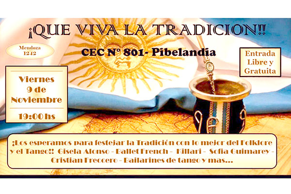 Como todos los años, el Centro Educativo Complementario Nº801 Pibelandia, habá de celebrar el Día de la Tradición, con un gran festival que se rfealiza sobre el frente del establecimiento.