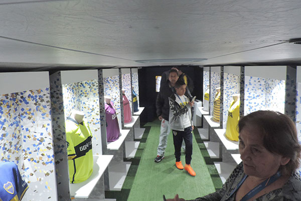 La iniciativa del Club Atlético Boca Juniors viene recorriendo el interior del país, con un ómnibus itinerante que exhibe camisetas y copas, así como obras de Quinquela Martín y otros artistas.