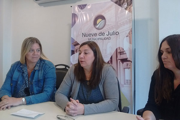 La Secretaria de Desarrollo Comunitario de la Municipalidad de Nueve de Julio, María del Carmen Fernández, junto a la Subsecretaria de esta cartera, Valeria Gómez y la Directora de Adultos Mayores de la Municipalidad de Nueve de Julio, María Eugenia Martínez, resumieron aspectos de la tarea desarrollada con los abuelos ante los medios de prensa.