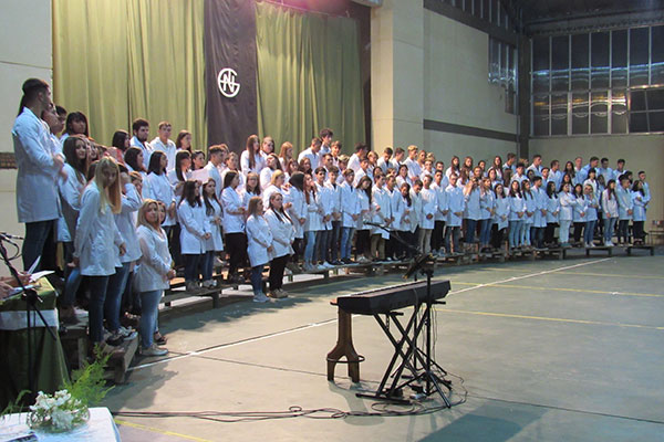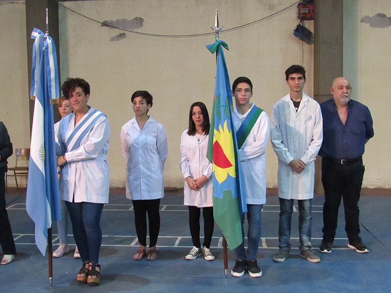 Durante la ceremonia, se realizó la entrega de diplomas, la distinción al mejor promedio y a los mejores compañeros, como así también, el traspado de las banderas Argentina y Bonaerense por parte de los alumnos egresantes a los que cursarán en 2019 su último año en el establecimeinto.