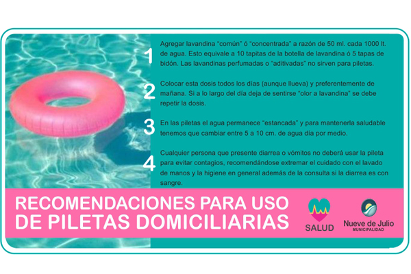 La Secretaría de Salud y la Dirección de Bromatología de la Municipalidad de Nueve de Julio brindan a la comunidad las siguientes recomendaciones para el uso de piletas domiciliarias.