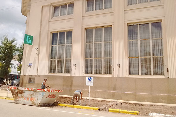 En este tramo, en la sucursal de 9 de Julio se comenzó con el recambio de la vereda.