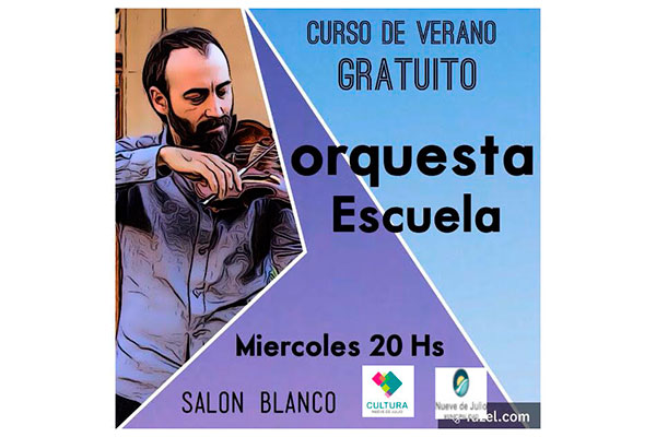 La Orquesta Nueve de Julio, que se desempeña bajo la órbita de la Dirección de Cultura, informa a la comunidad que comienza el curso de verano gratuito, el cual se realizará los días miércoles en el Salón Blanco Municipal desde las 20 hs.
