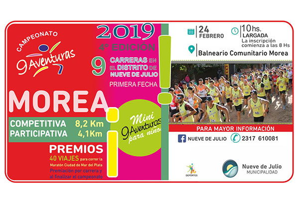 A través de la Dirección de Deportes de la Municipalidad de Nueve de Julio el Campeonato “9 Aventuras”, que abarca 9 competencias atléticas en la ciudad y el partido y sumó una notable cantidad de atletas en años anteriores, ya prepara su cuarta edición, que se pondrá en marcha en el 24 de febrero próximo, en la localidad de Morea.