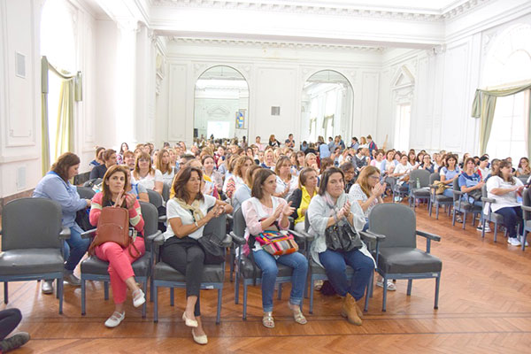 La interesante propuesta, que contó con una muy importante asistencia de docentes del nivel inicial, tuvo por objetivos reconocer las propiedades y habilidades para brindar herramientas en pos de la prevención del distrés en los docentes; trabajándose en los conceptos de comunicación asertiva con los alumnos y la comunidad educativa, y hallar los estresores más habituales en lo cotidiano de la escuela