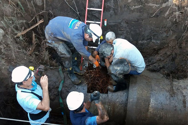 Las acciones, que demandaron unas 12 horas de trabajo, se centraron sobre el kilómetro  303.911 de la Ruta Nacional N°5, lugar en el cual se detectó una obstrucción  formada por ramas y raíces que impide el normal funcionamiento del Acueducto.