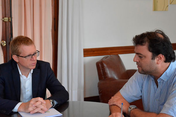 Tras visitar la sucursal local de la entidad financiera, donde se llevan adelantes obras de mejoras y reformas para una mayor comodidad en la atención de clientes y vecinos en general, el funcionario fue recibido en su despacho por el Intendente Municipal, Mariano Barroso, con quien abordó distintos temas de actualidad, y posteriormente realizó una visita a un microempresario local, quien recientemente fue beneficiario del microcrédito Nro. 200.000 de la entidad crediticia, en su lugar de trabajo.