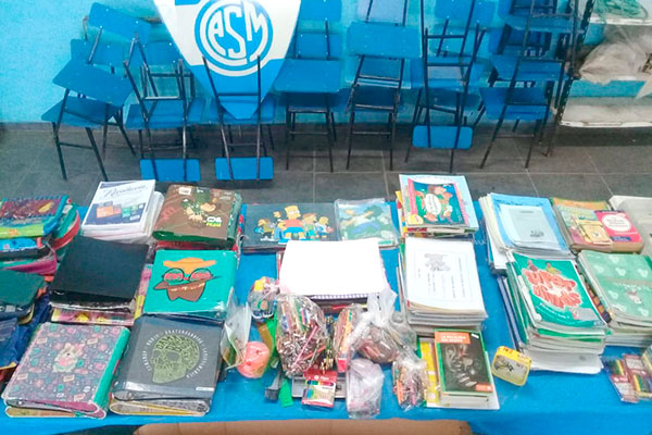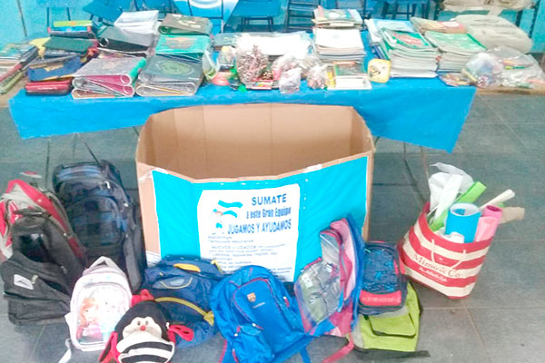 Producto de ello se contabilizaron 15 mochilas, 20 carpetas, 30 cartucheras, 25 cuadernos, lápices, lapiceras, fibras, libros escolares, libros de cuentos, respuesta de hoja de carpeta, materiales como cartulinas entre otros elementos.