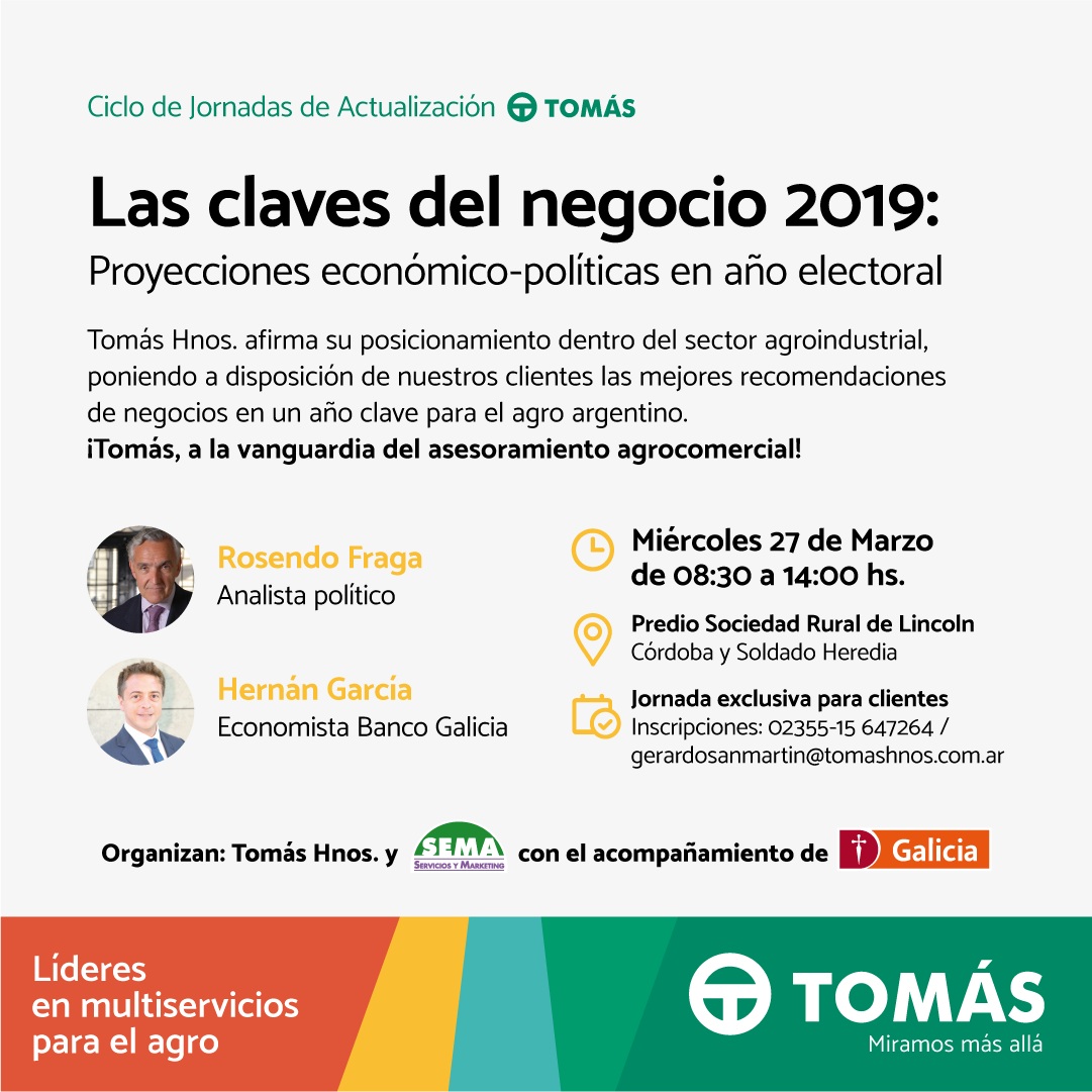 Hoy tendrá lugar la Jornada de Actualización Tomás Hnos. en Lincoln, la que se desarrollará entre las 8.30 y las 14 hs., en el Salón de la Sociedad Rural.