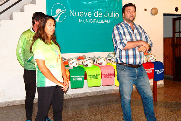 En la noche del martes, el Intendente Municipal de Nueve de Julio, Mariano Barroso, presidió la entrega de material deportivo a los diez clubes del distrito que conformaron equipos de fútbol femenino (El Fortín, Agustín Alvarez, Atlético Patricios, Dudignac, 12 de Octubre, French, Libertad, San Martín, Quiroga y San Agustín). y que participan del torneo organizado por la Liga Nuevejuliense de Fútbol, instancia que se concretó a través de la Dirección de Deportes.