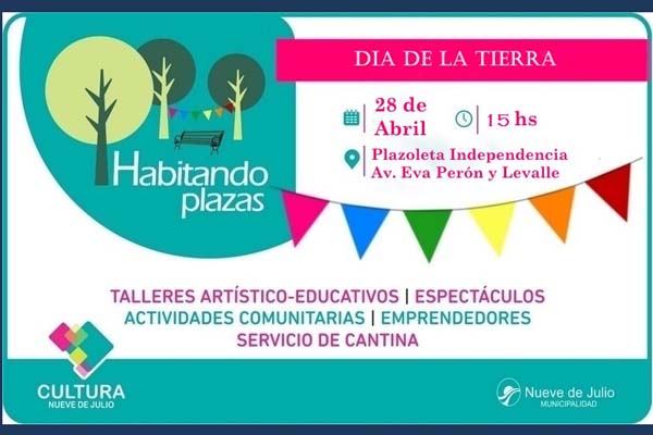 En conmemoración del Día de la Tierra, la Dirección de Cultura de la Municipalidad de Nueve de Julio, llevará adelante el próximo domingo 28 del corriente, desde las 15 hs., un nuevo encuentro del ciclo “Habitando Plazas” en la Plazoleta Independencia, ubicada en Av. Eva Perón y Levalle.