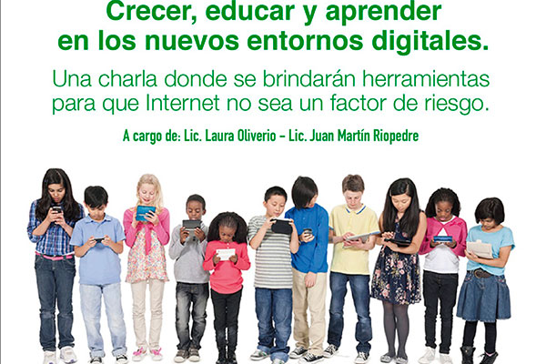 Con la organización de la Secretaría de Salud y la Subsecretaría de Niñez, Adolescencia y Familia de la Municipalidad de 9 de Julio, el viernes 17 del corriente, a las 20 hs., en el Salón Blanco del Palacio Municipal, se habrá de dictar una interesante charla sobre el tema “Crecer, educar y aprender en los nuevos entornos digitales”, dirigida a padres, docentes y adultos interesados, y a cargo de los Lic. Laura Oliverio y Juan Martín Riopedre.