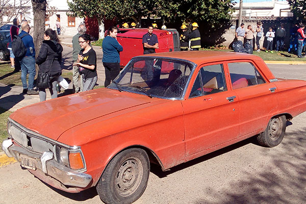 Producto del golpe, su conductora, perdió el control del rodado, terminó volcando y debió ser retirada del vehículo por personal del sistema de emergencias de Clysa, por el portón trasero del vehículo, recibiendo algunos golpes y heridas menores, aunque no obstante fue trasladada para su atención al Hospital Julio de Vedia.