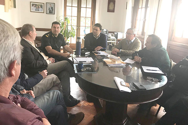 En horas del mediodía del lunes, el Intendente Municipal de Nueve de Julio, Mariano Barroso, acompañado de funcionarios de su Gabinete y autoridades policiales, recibió a los integrantes de la agrupación “Vecinos por la Seguridad”, quienes fueron informados de las distintas acciones que se llevan adelante en esta área, fundamentalmente lo relacionado con la instrumentación del programa “Ojos en alerta”, que fortalecerá la acción vecinal en materia de seguridad; y la próxima creación del Observatorio Vial.