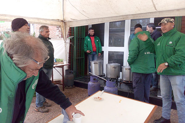 Como nuestro medio lo anticipara, en la jornada de ayer, y en adhesión al paro general de actividades dispuesto por las centrales obreras, el Sindicato de Camioneros de 9 Julio llevó adelante una olla popular frente a la sede de su Sindicato, sobre Avda. Cardenal Pironio.