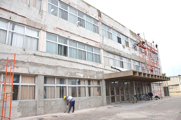 En el caso de la Escuela Normal Superior (ex Comercio), a través del denominado “Fondo Riesgo Inicio”, correspondiente al ejercicio 2018, se ejecuta la reparación de la fachada del edificio con una inversión de 7,5 millones de pesos, siendo esta la primera etapa de distintas obras previstas.