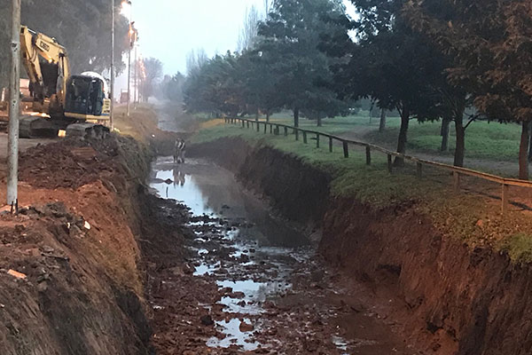 La Municipalidad de Nueve de Julio, a través de la Secretaría de Obras y Servicios Públicos, trabaja en estos momentos en una importante obra de canalización, en el sector posterior del Parque Gral. San Martín.