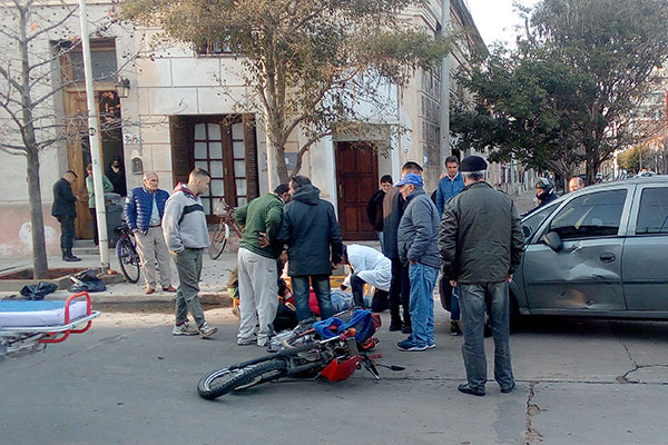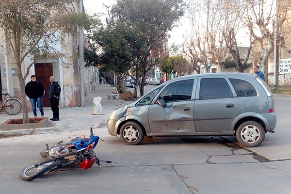 Siendo aproximadamente las 9 hs. de ayer, en la intersección de calles Mendoza y salta de nuestro medio, por causas que se tratan de establecer, colisionaron un automóvil Chevrolet Meriva y una motocicleta Motomel 110.