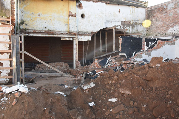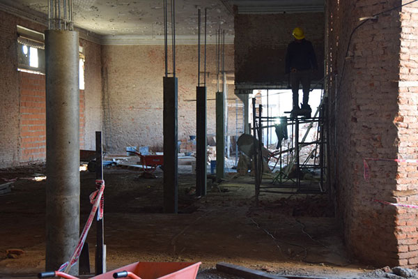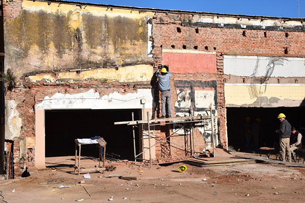 Los trabajos de construcción del nuevo Polo Educativo y el Jardín Maternal para empleados municipales, en el ex edificio de Supermercado San Cayetano de calles Libertad y Salta, presentan un marcado avance; desarrollándose en estos momentos la demolición de parte de la mampostería del patio interno y la construcción de columnas de hormigón en el sector central del edificio.