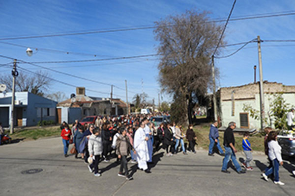 Una multitud de fieles acompañó ayer en la ciudad de Nueve de Julio las celebraciones de San Cayetano, patrono del pan y del trabajo. Comenzaron en la capilla que lleva su nombre con la procesión por las calles del barrio y luego continuaron con la celebración de la misa, presidida por el Padre Guillermo Gómez.