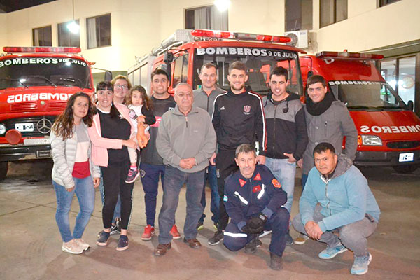 En la jornada de este último martes, en horas de la noche, los jugadores Pablo Macagnani (Atlético 9 de Julio) y Jonathan Rodríguez (French), y simpatizantes de ambos clubes, entregaron las mercaderías a los Bomberos Voluntarios.