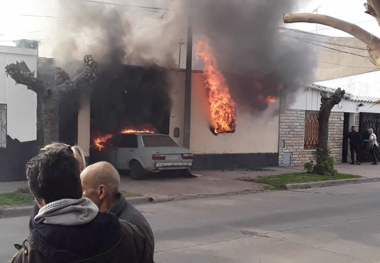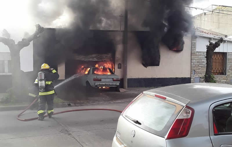 En la tarde de hoy, a las 16:15 hs., tres dotaciones de bomberos voluntarios trabajaron por varios minutos para sofocar un incendio desatado en un taller mecánico, ubicado en Alsina al 1300.