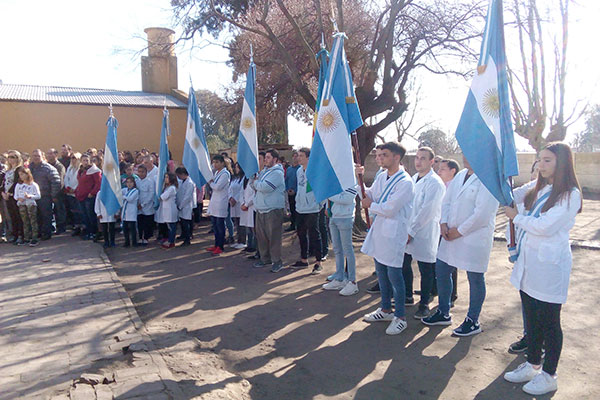 Tras la recepción de invitados, y la pre sentación de autoridades; se dio ingreso a las banderas de ceremonia y se procedió a entonar las estrofas del Himno Nacional Argentino. Tras oficiarse un minuto de silencio, dejaron sus discursos alusivos a la fecha la Inspectora jefe Distrital, Liliana Vallabriga y el Intendente Municipal de 9 de Julio, Mariano Barroso.